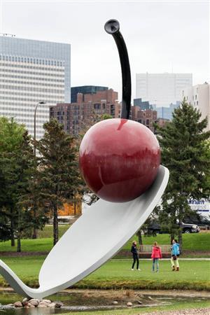 - 全米最大規模の都市型彫刻庭園のシンボル「スプーンブリッジとチェリー」。重さは15トンにも及ぶ=2014年10月17日、米ミネソタ州のミネアポリス彫刻庭園(緑川真実さん撮影)更新