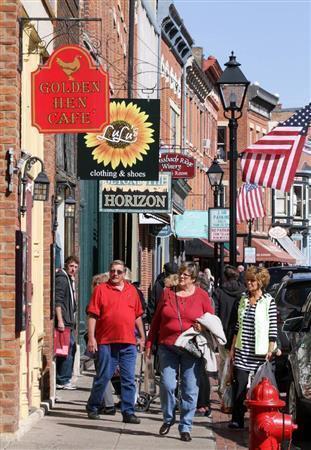 - シカゴなど近郊都市やカナダなど、国内外から訪れる観光客でにぎわいをみせるメーンストリート=2014年10月11日、米イリノイ州ガリーナ(緑川真実さん撮影)更新