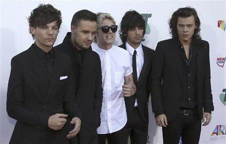 英のボーイズグループ「ワン・ダイレクション」=2014年11月26日、オーストラリア・シドニー(AP)