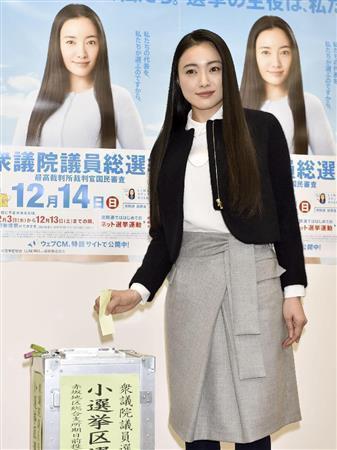 - 【衆院選】期日前投票をPRする、女優の仲間由紀恵さん=2014年12月8日午前、東京都港区(共同)更新