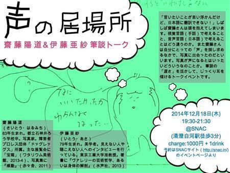 齋藤陽道(写真家)×伊藤亜紗(美学者)による筆談トーク「声の居場所」のポスター(提供写真)