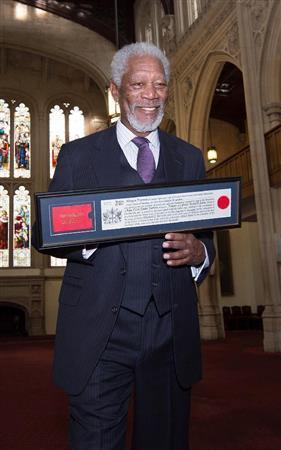 米俳優、モーガン・フリーマンさん=2014年11月12日、英国・首都ロンドン(AP)
