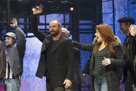 英ミュージシャン、スティングさん(中央)=2014年12月9日、米ニューヨーク(AP)