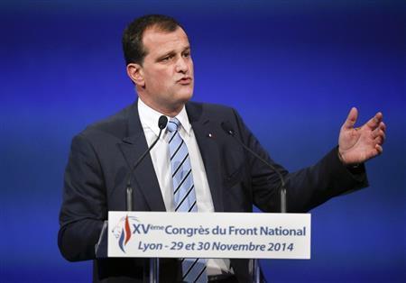 フランスの極右政党、国民戦線のルイ・アリオ副党首=2014年11月29日、フランス・リヨン(ロイター)