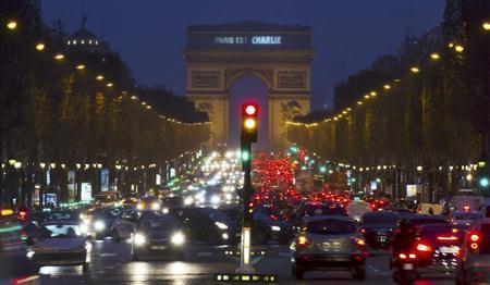 - 犠牲者の追悼とテロに屈しない姿勢を意味する「私はシャルリー」の標語は世界に広がった。凱旋門に「パリはシャルリーだ」と大きく書かれたパリのシャンゼリゼ大通り=2015年1月10日、フランス・首都パリ(AP)更新