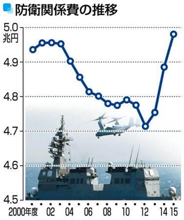 【2015年度予算案】防衛関係費の推移<2000年度~2015年度>=2015年1月14日、閣議決定