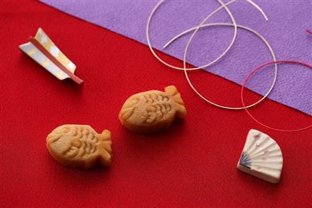 - 鯛が泳いでいるように少し斜めにすると良いでしょう。影が柔らかくでる場所を選んで撮影しましょう(須藤夕子さん撮影)。※お菓子:梅林堂の満願成就更新