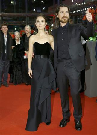 英俳優、クリスチャン・ベールさん(右)と米女優、ナタリー・ポートマンさん=2015年2月8日、ドイツ・首都ベルリン(ロイター)