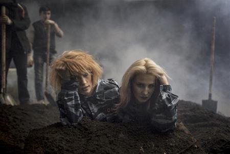 女性パンクバンド「プッシー・ライオット」のメンバーの2人=2015年(AP)