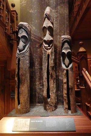 ハワイビショップミュージアムに展示されているバヌアツのタムタム=2015年1月18日、米ハワイ州(相川梨絵さん撮影)