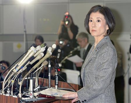 株主総会後の記者会見に臨む、大塚家具の大塚久美子社長=2015年3月27日午後、東京都江東区(共同)