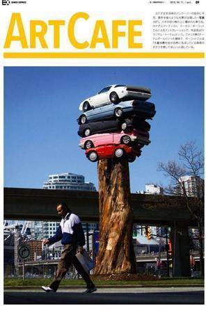 カナダ人アーティスト、マーカス・ボーコットさんによるインスタレーション。作品名は「トランサム・トーテム」=2015年4月8日、カナダ・ブリティッシュコロンビア州バンクーバー(AP)