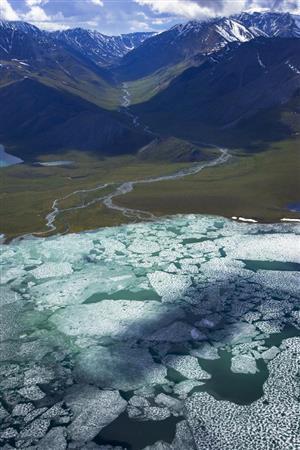 - ブルックス山脈最大の湖、シュレイダー湖。分厚い氷も白夜の日差しで融けてゆく=2014年7月5日、米アラスカ州(松本紀生さん撮影)更新