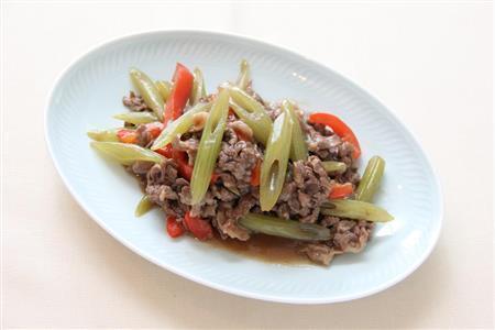 - フキと牛肉、パプリカの中華炒め。※343kcal、塩分1.2グラム(1人分)更新