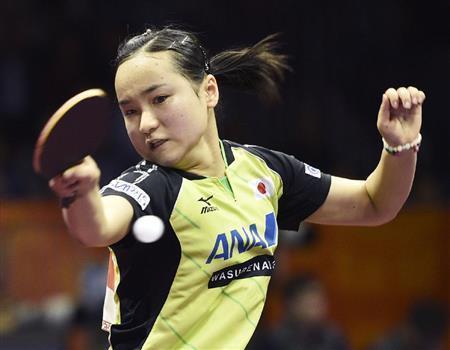 女子シングルスで健闘した伊藤美誠(みま)=2015年5月1日、中国・江蘇省蘇州市(共同)