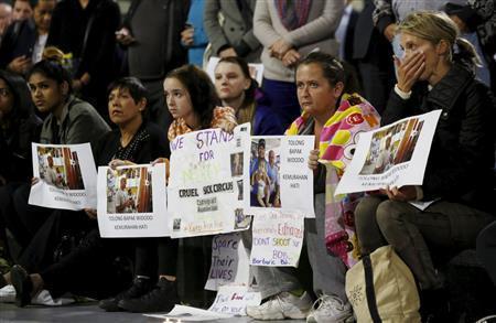 4月28日、オーストラリアのシドニーで、インドネシア政府に対して豪州人2人らの死刑執行を思い止まるよう求める集会に参加した人々。だが翌日、死刑は執行された=2015年(ロイター)