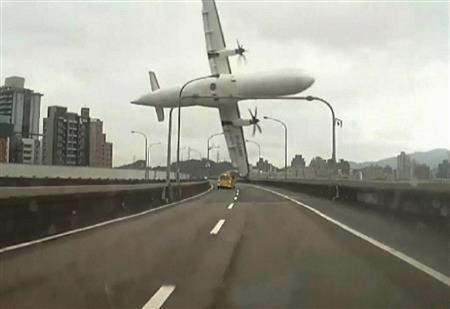 台湾で起きたトランスアジア航空235便墜落事故=2015年2月(フジテレビ提供)