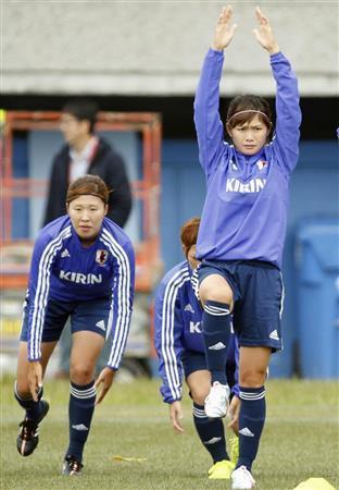 W杯へ向け調整する川村優里(ゆうり、左)と川澄奈穂美(なほみ)=2015年6月3日、カナダ・ブリティッシュコロンビア州バンクーバー(共同)