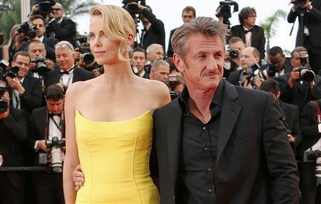 米俳優、ショーン・ペンさん(右)と米女優、シャーリーズ・セロンさん=2015年5月14日、フランス・カンヌ(ロイター)