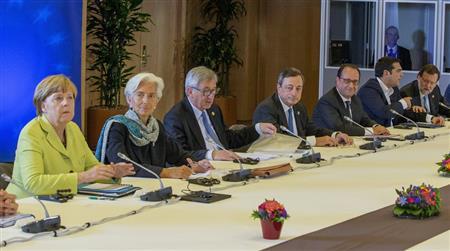 ギリシャ向け金融支援問題を協議するため、6月22日にベルギー・首都ブリュッセルで開かれたユーロ圏の緊急首脳会議=2015年(ロイター)