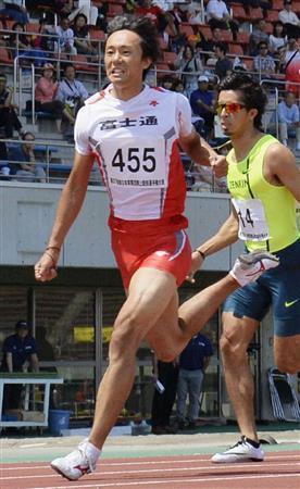 東日本実業団選手権の男子200メートルで優勝した高瀬慧(けい、中央)=2015年5月、埼玉県熊谷市の熊谷スポーツ文化公園陸上競技場(共同)