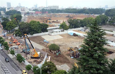 解体作業が終わり、整地された国立競技場跡地。新国立競技場は2019年5月の完成を目指す=2015年6月16日、東京都新宿区(寺河内美奈撮影)