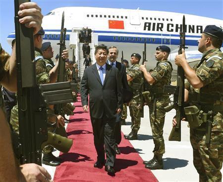 昨年7月13日、ギリシャを訪問した中国の習近平国家主席。この3週間前には李克強首相もギリシャを訪れ、貿易・投資協定を締結して両国関係を強化した=2014年、ギリシャ・ロードス島(新華社=共同)