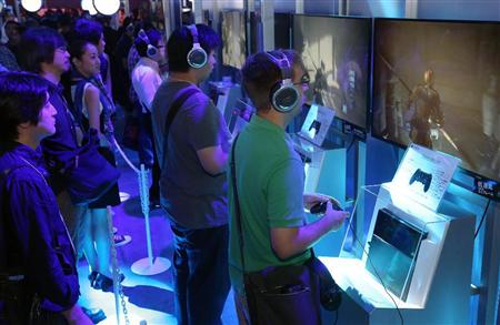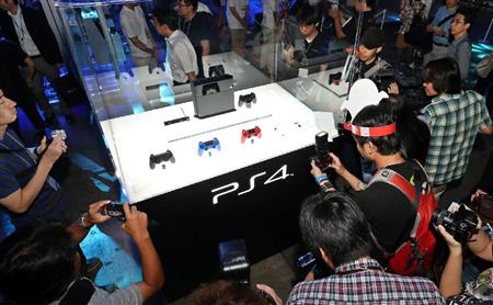 PS4の実物も多数展示され、米マイクロソフトの新型ゲーム機「Xbox One」とともに人気を集めた。