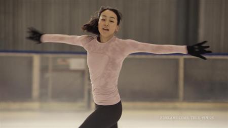 映像では浅田選手がステップやスピン、ジャンプをする姿が映し出された後、浅田選手の顔がアップになり、「今までで、一番強い浅田真央を見せたいです」というメッセージが流れる。