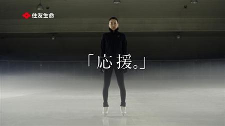 CMでは冒頭、リンクの上に立った浅田選手が登場し、自分を支えてくれる人々への思いを語る。