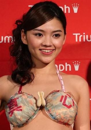 発表会に登場した同社イメージガールの高原愛さんは「真心のプリントがすごいかわいい」、大石絵理さんは「ホルターネックが気に入っています」とそれぞれアピールした。同社は年に2回、世相を反映したユニークな下着を製作し公開しており、今回で55作品目。