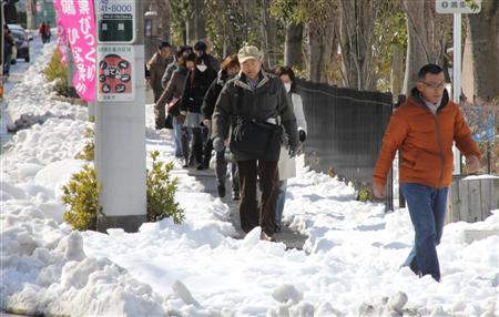 15日に観測史上4番目の積雪を観測した福島市では、「17日になってようやく商品が届き始め、ほっとした」。車両約100台が一時立ち往生した国道115号近くの同市荒井にあるコンビニの女性従業員(62)は安堵(あんど)の表情を浮かべた。