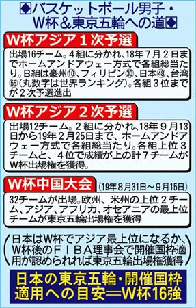 《※注1…日本男子は国際バスケットボール連盟(FIBA)から東京五輪の開催国枠を保障されていない。開催国枠を得るにはW杯に出場し、ベスト16相当の結果を残すことが必要とされている》