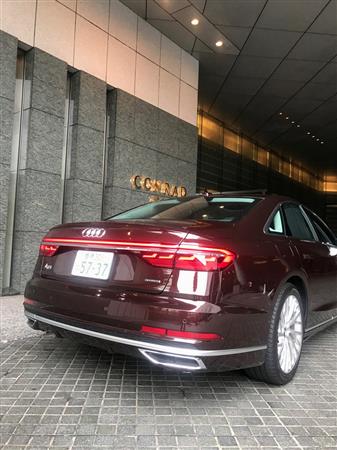 更新場所は東京・港区のホテル、コンラッド東京だった。都内有数の高級ホテルを起点に新型アウディA8の国内試乗会が開催されていた。いつもとはどこかよそいきの気分で向かったのは、ホテルが超高級だっただけでなく、新型アウディA8への期待が高かったからに他ならない。