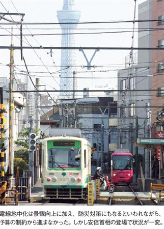 安倍首相らの動きに先立って、国土交通省は昨秋から無電柱化の検討に本腰を入れ、羽田空港や都内主要駅周辺など昼間の人口流入の多いエリアで無電柱化率100%を目指す方針を決めている。