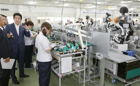 安倍首相「これはすごい」 ロボット活用現場を視察