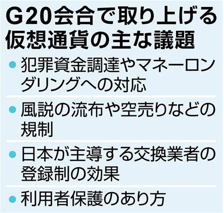G20で仮想通貨規制案、日本主導で議論へ 風説流布・空売り禁止など