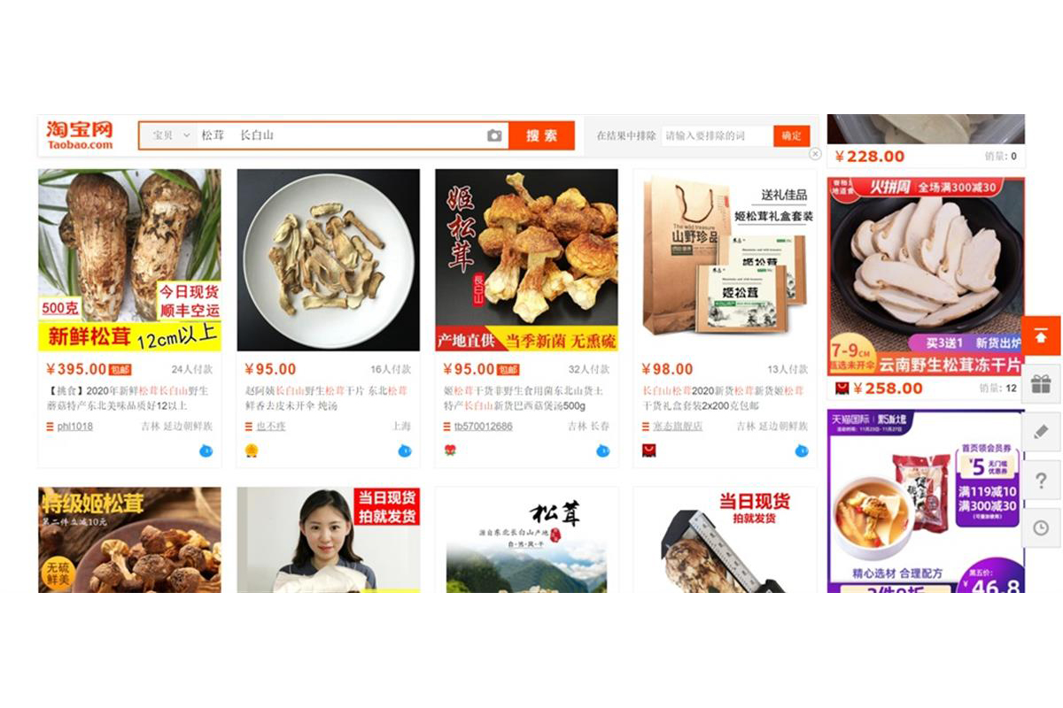 中国では東北の吉林省と南部の雲南省が2大産地とされる。その中でも吉林のマツタケは、形、香り、味覚が国産に近いと言われる。