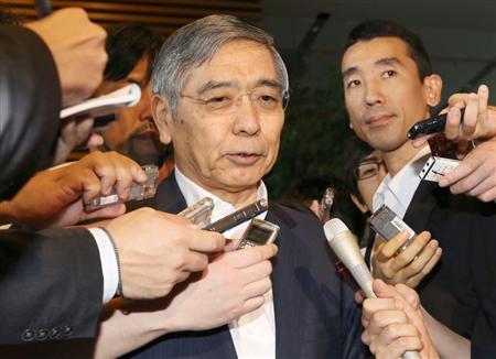 安倍晋三首相との会談を終え、記者の質問に答える日銀の黒田東彦総裁=11日午後、首相官邸