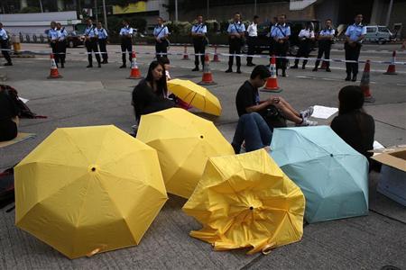 香港で続く大規模デモ。傘下する民主化推進派の象徴となっている「黄色い傘」は催涙弾などから身を守る盾になるという。政府への不満は中国のあちこちにたまっている。(ロイター)