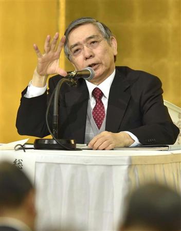 名古屋市内のホテルで講演する日銀の黒田総裁=25日午前