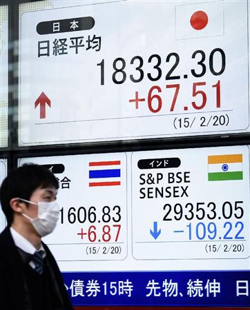 約14年9カ月ぶりの高値を2日連続で更新した日経平均株価の終値を示す株価ボード=20日午後、東京・日本橋茅場町