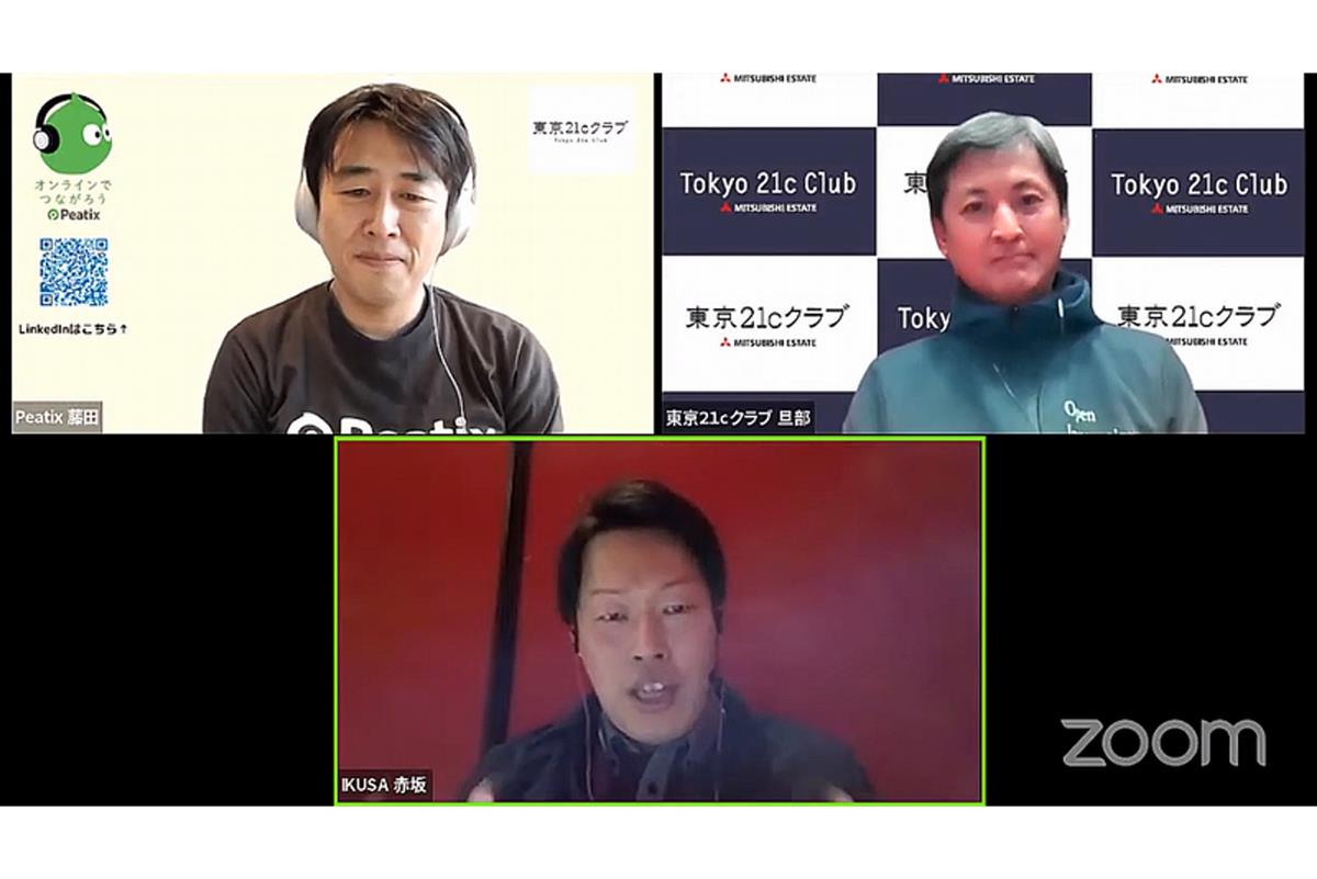 さまざまな遊びで、企業の課題解決に貢献するIKUSA。今回は、遊びを企業のニーズに合わせてどのように提供しているのか、サービス設計の工夫などをうかがいました。Peatix Japan 取締役 藤田祐司さん、東京21cクラブ運営統括の旦部聡志がモデレーターを務めました。