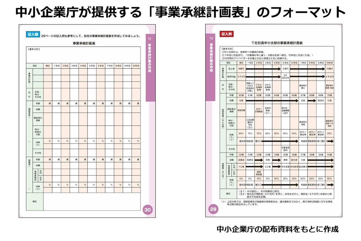 経営者の平均年齢の推移といった市場動向や課題、事例を交えた講座を行うケースが主流ですが、伝え方に工夫を凝らし、落語形式で行うセミナーもあったりします。本連載第1回で少し触れた中小企業庁の「事業承継計画表」を何回かに分けて、講師と一緒に作成していくようなセミナーも開催されていて、私も登壇経験があります。
