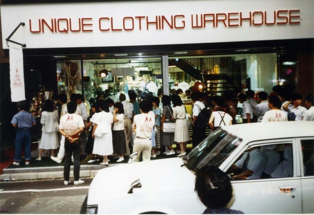 〈「いつでも服を選べる巨大な倉庫」である「ユニーク・クロージング・ウエアハウス」=ユニクロの1号店を昭和59年に広島に出店。開店後2日間は入場制限を行う大盛況だった〉