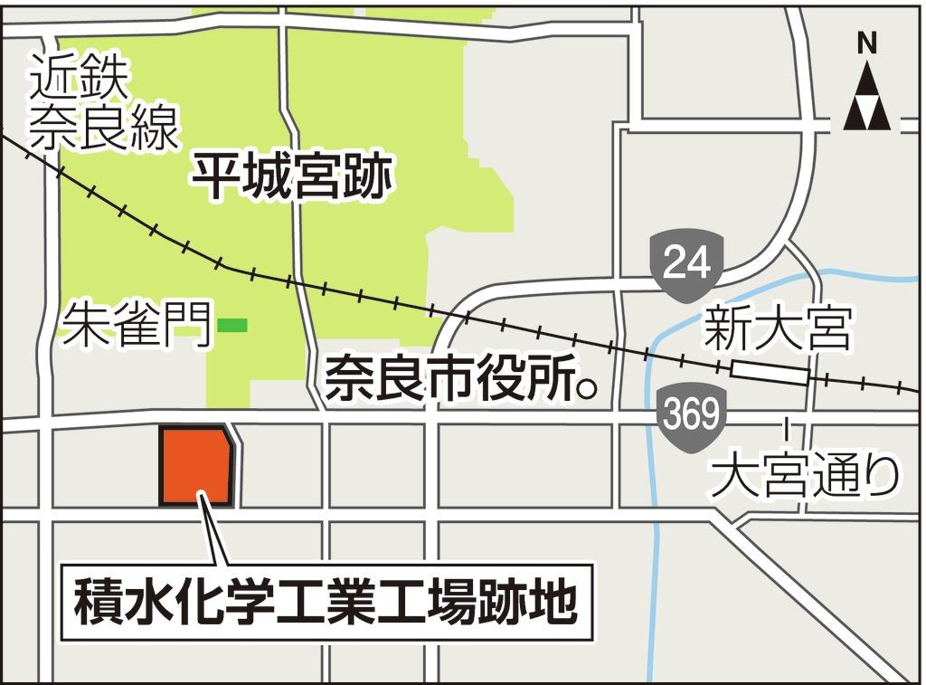 工場跡地は最近まで積水化学工業奈良事業所が操業していた。甲子園球場がすっぽりと入る広さで、平城宮跡に復元された朱雀門がすぐ目の前にある。国際色豊かな天平(てんぴょう)文化が花開き、「あをによし 寧楽(なら)の京師(みやこ)は 咲く花の 薫(にお)ふがごとく 今盛りなり」と万葉集に歌われた平城京のまさに中枢だった場所だ。