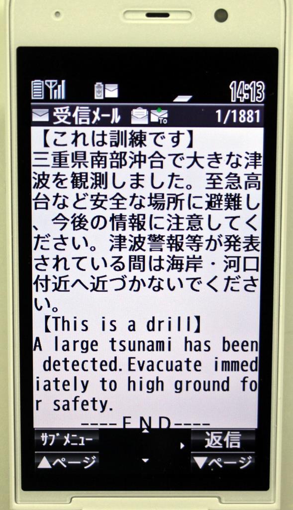 津波の第2、第3波が予測されたときは、その都度、警戒メールを送信。東日本大震災で第2波後に海岸に近づいた人が津波に巻き込まれた二次被害防止の役割も担う。