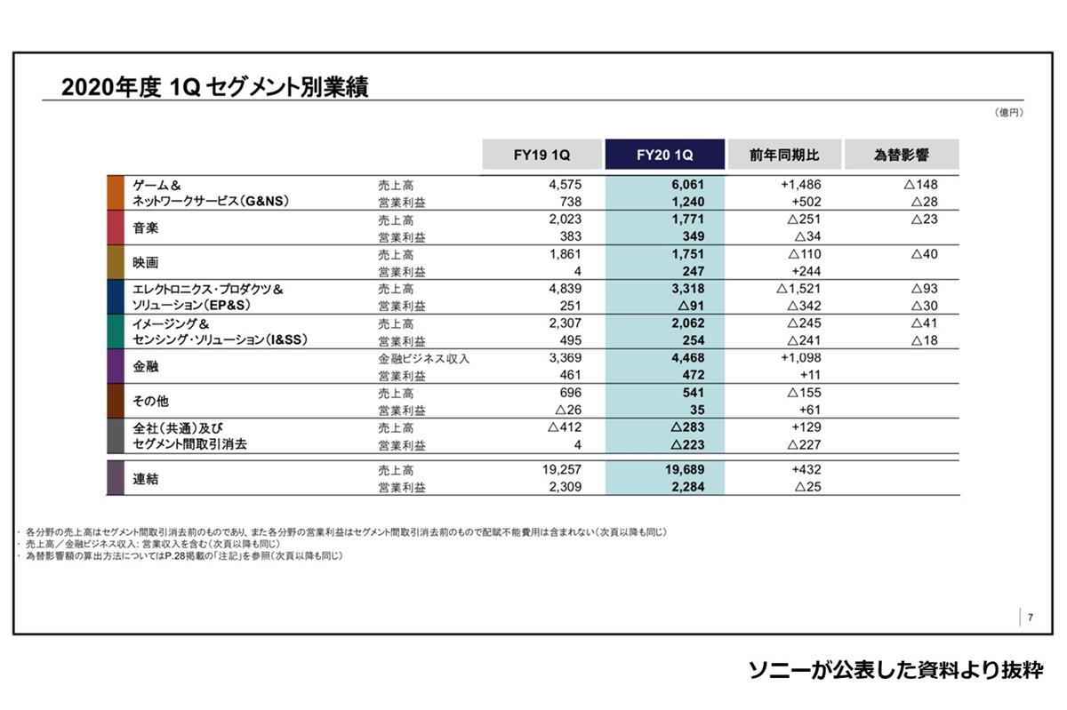 ソニーが8月4日、2020年度第1四半期の業績を発表しました。売上高は1兆9689億円(前年同期比432億円増)、営業利益は2284億円(前年同期比 25億円減)というものでした。2012年には800円ほどまで落ちた株価は8000円ほどまでに上昇し、実は見事なV字回復をしているのです。