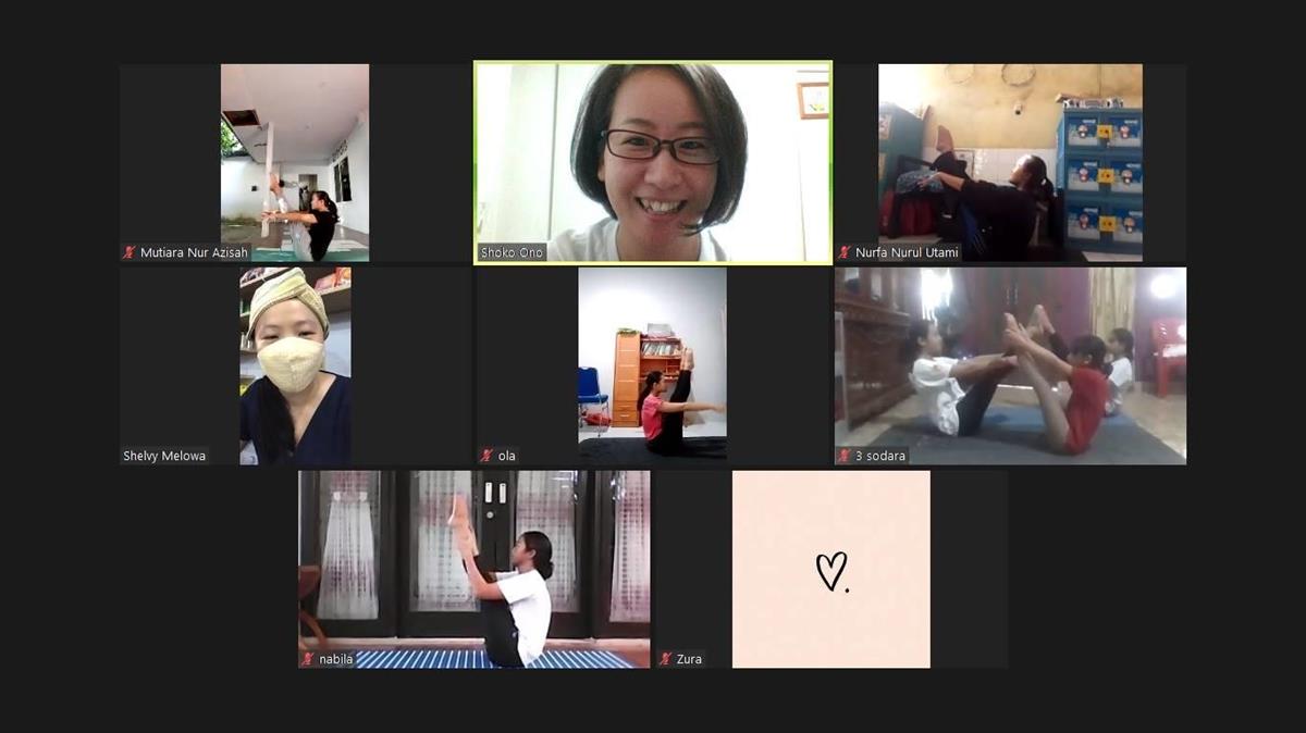 インドネシアのマカッサルでアーティスティックスイミング(旧称・シンクロナイズドスイミング)を指導する隊員の小野祥子さん=横浜市=は週4回、自宅でパソコンを開き、ビデオ会議アプリ「Zoom(ズーム)」を活用した指導を行う。「手の指先はまっすぐではなく、少し小指を上げて」。現地のコーチの協力も得て、選手に細やかな動きを正確に伝える。