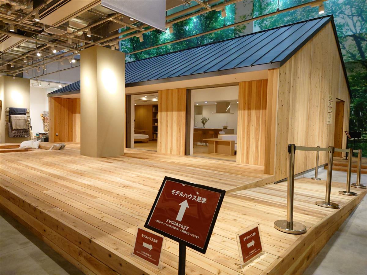 なんと、3フロアある真ん中のフロアには平屋一戸建て住宅のモデルルームまであり、他の製品と同様MUJIのプライスカード1615万円(税別)がついていて中を見学できます。